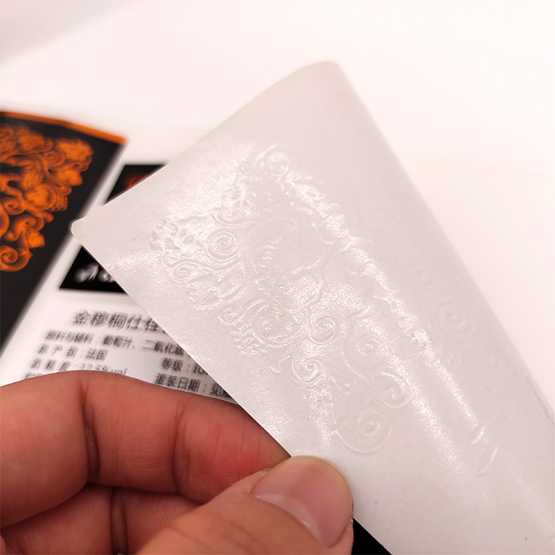 专用配套材料:压敏胶持粘力≥48h,UV油墨附着力≥5B(按ASTM D3359标准测试),能确保标签在击凸压纹过程中不脱胶、不掉色,保障复杂图形的色彩稳定性和结构完整性,适配所有复杂图形类型。