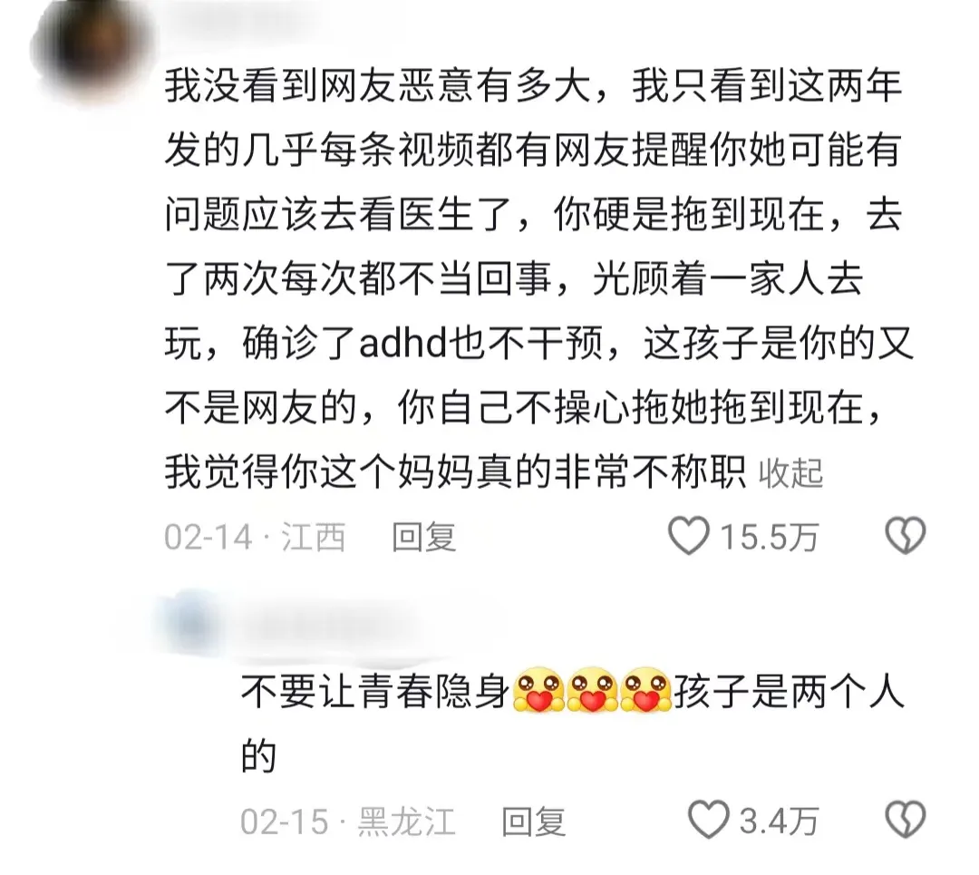 还有细心的网友发现涵璐发育有些迟缓,建议晓丽带孩子去医院检查一下。