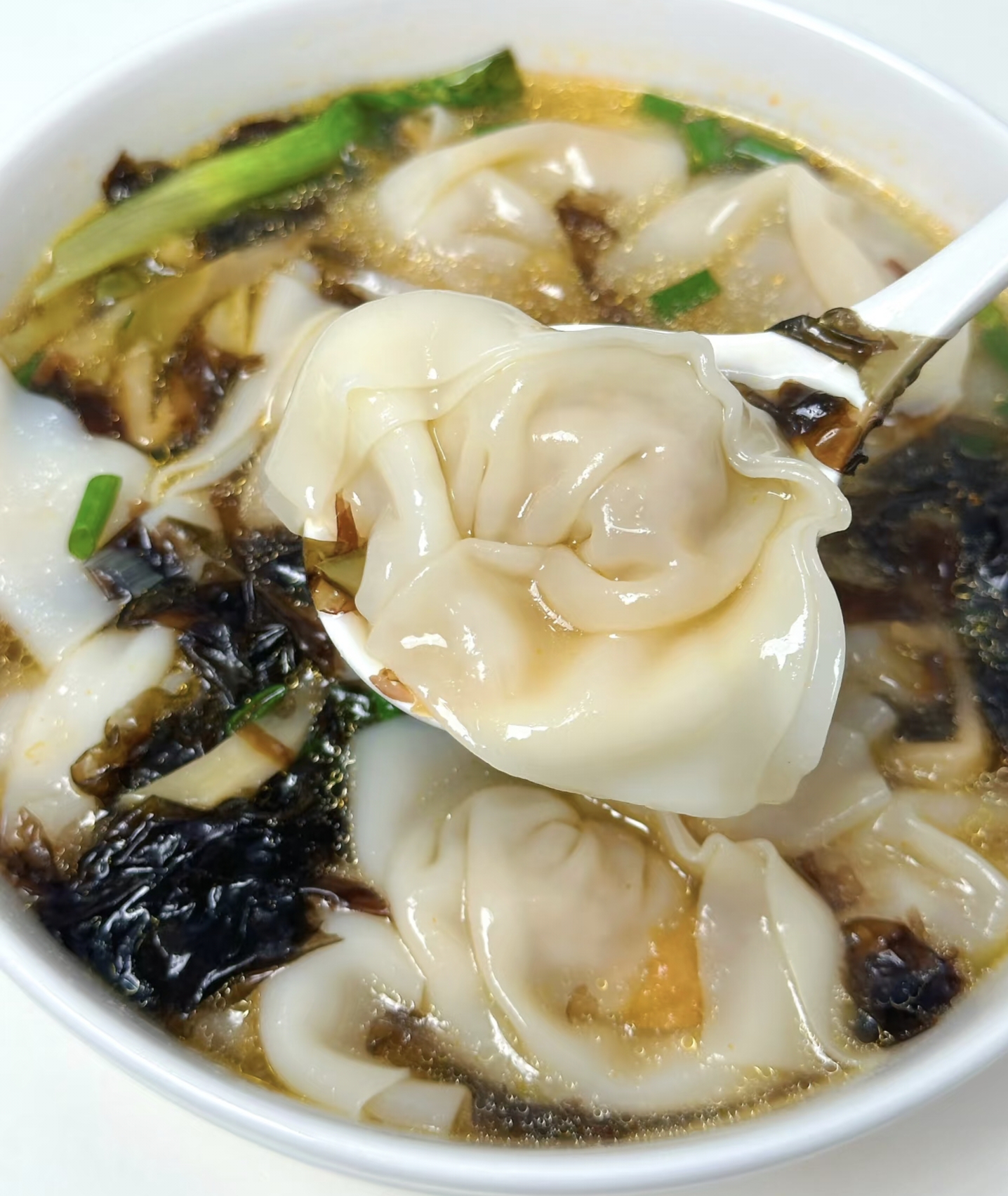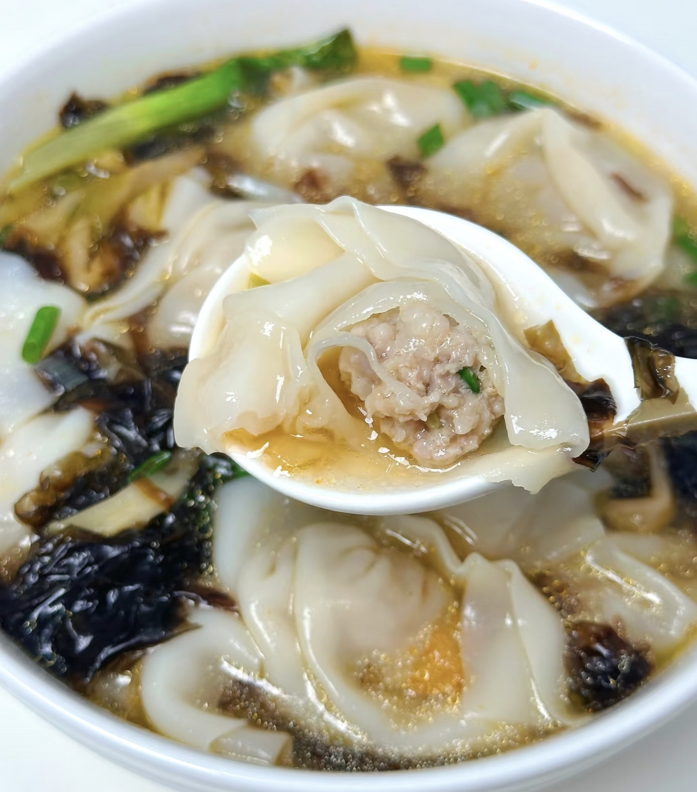 当滚烫的馄饨汤冲入碗中,瞬间激发出层次分明的香气:紫菜的海洋气息、虾皮的鲜甜、榨菜的脆爽在热气中交织升腾。将煮熟的馄饨用漏勺捞起,在汤碗里摆成花朵造型,最后淋上几滴红亮亮的辣椒油,一碗色香味俱全的鲜肉小馄饨便大功告成。