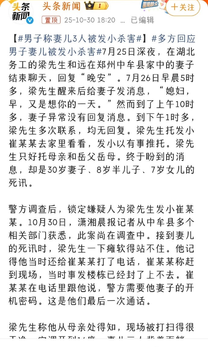 这起悲剧最令人心惊的,是它对基本人际信任的摧毁。梁先生那句“他为何对我妻儿痛下杀手”的诘问,道出了所有旁观者的困惑。当最亲密的关系都无法成为安全的保障,当善意的付出换来的是残忍的回报,我们该如何相信这个世界?