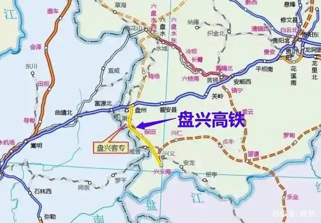 盘兴高铁线路走向:从沪昆高铁盘州站引出,经盘州市石桥镇、响水镇、保田镇,至兴义市清水河镇,最终接入兴义南站。