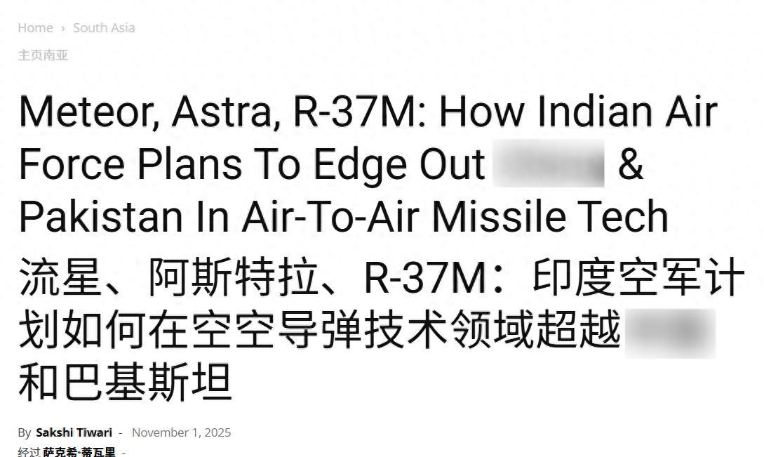 印度空军只是表面上不承认输掉印巴空战,实际已经开始病急乱投医!为了反败为胜,正在采取多种措施。印度媒体《欧亚时报》在2025年11月1日报道,印度计划购买法俄制造的远程导弹,已确定的计划为,法国的“流星”导弹、俄罗斯的R-37M导弹,再加上自主研发的“阿斯特拉”导弹,这将成为印度空军未来远程空战的主要武器,这是誓要打败中国和巴基斯坦的霹雳-15导弹,明确将中巴视为对手。