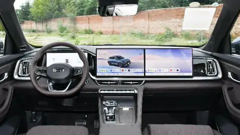 除此之外,星越L这款车在车内布局也相当给力。整体设计风格偏向豪华科技感,采用T字形布局。车辆前台中控台配备了三块大屏,分别为方向盘前的10.32英寸全液晶仪表盘、中控台中间位置的14.6英寸悬浮式中控大屏,以及副驾驶位置的14.6英寸副驾娱乐屏。娱乐屏和中控大屏在尺寸上有明显升级,为驾驶者提供更好的视觉体验,分辨率也相当高,整体画面清晰细腻,足以满足大部分消费者的实际使用需求。车辆还配备了抬头显示系统,该系统能够为驾驶者映射出一个25.6英寸的HUD投影,意味着驾驶者可以在前舱体验到视频互动的高科技场景,有效提升2026款吉利星越L东风耀车型的豪华感,进一步满足消费者的追求。