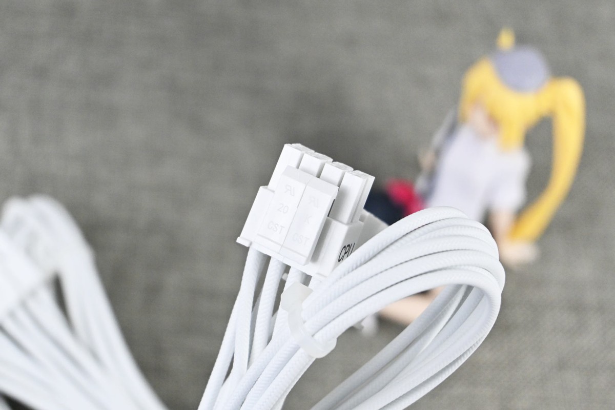 利民TP1650的所有线材都为白色主题方案,从接头到线材本身,标准接头均带有UL安全标识,12V-2x6(12VHPWR)两条均支持600W,所有线材都采用单根压纹线设计,手感较为柔软。