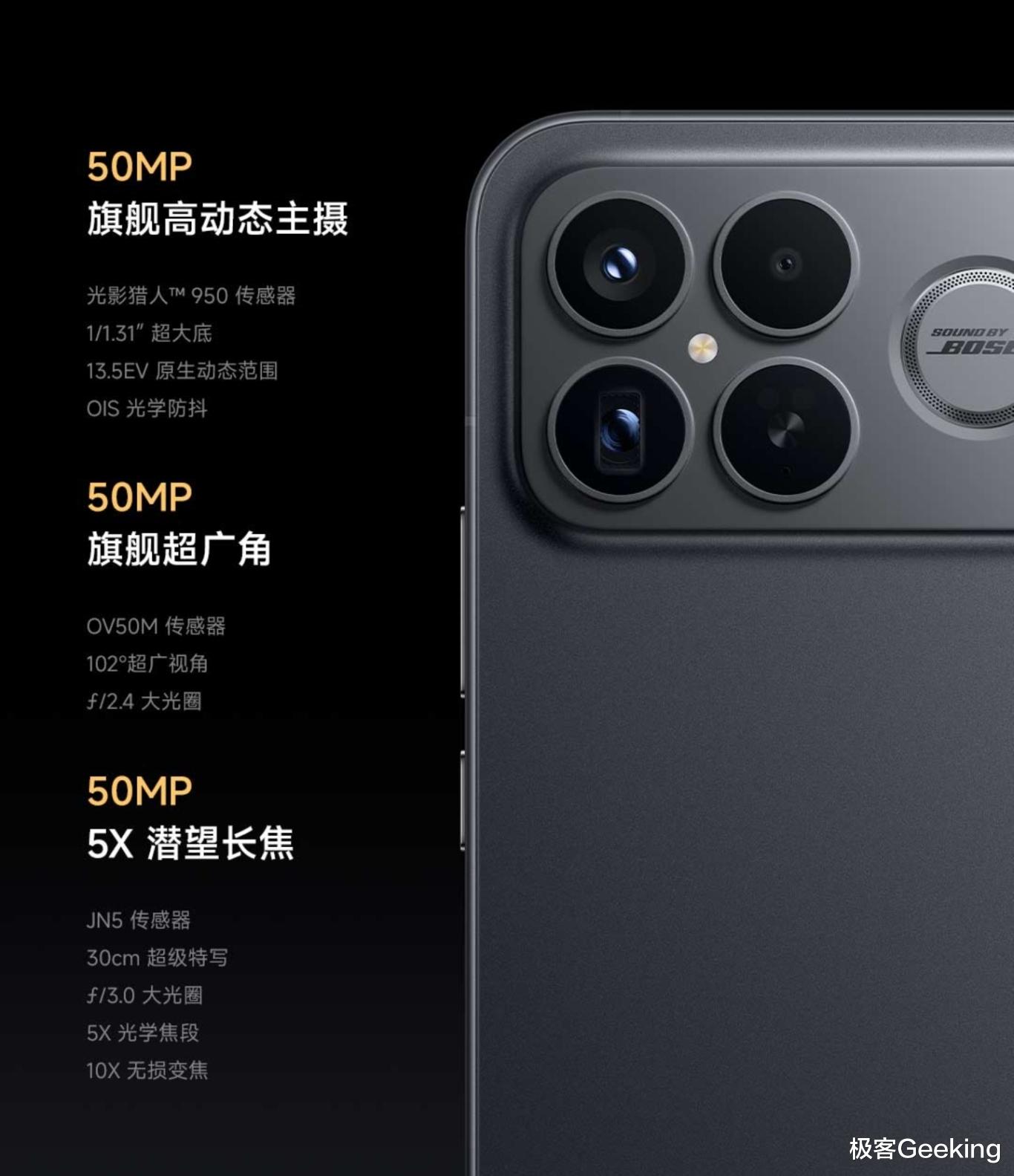 所搭载处理器没有意外,分别是骁龙8 至尊版和第五代骁龙8 至尊版芯片,总结来说,K90 系列的主要升级和变化除了外观,还包括屏幕、影像、电池续航、USB 3.0、系统和其它等方面,同时还引入了 Bose 调音扬声器,总结这两款旗舰手机的核心配置规格如下: