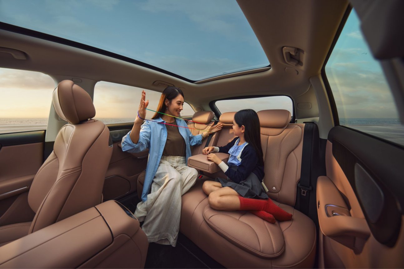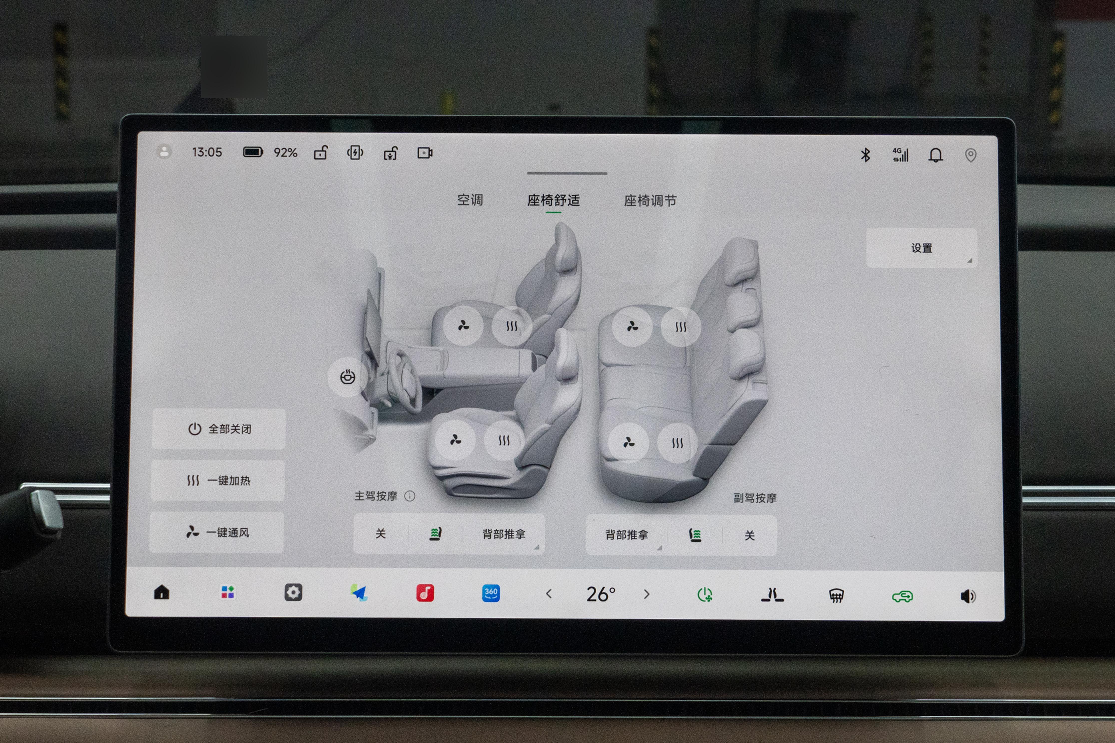再说说座椅配置,那真的是豪华感拉满了。主副驾座椅都带通风、加热和按摩功能,主驾还有记忆和迎宾功能,上车下车特别方便。副驾座椅还新增了672mm的电动腿托,完全放下来就是“头等舱”的感觉,长途坐车的时候把腿托升起来,能把腿完全舒展开,太惬意了。后排座椅也没被亏待,同样带通风和加热功能,还配了多功能触控屏,后排乘客自己就能调空调温度、风量,还能切换音乐,再也不用麻烦前排的人了。