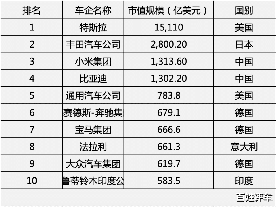 2025年底的全球车企市值榜上,排在最前面的不再是年销近千万辆的传统巨头,而是一批打法迥异的新玩家。特斯拉以1.5万亿美元稳坐头把交椅,它最大的标签是自动驾驶生态的先驱者和领跑者。紧随其后的是小米(1313亿)和比亚迪(1302亿),一个靠消费电子基因跨界造车,一个从电池起家打通全产业链。反观丰田,市值2800亿美元,看似“保守”,却在电动热潮退潮后,靠着混动技术的深厚积累和遍布全球的制造体系,稳稳接住了市场的震荡。