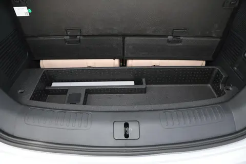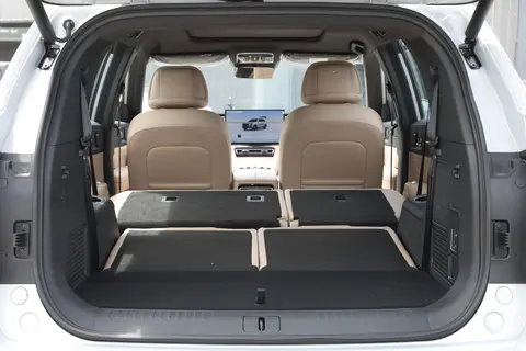 • 丰富的储物细节: 全车43处储物格充分考虑了日常使用的便利性,无论是门板槽、中控台隐藏格都触手可及。中央扶手箱深度达到22cm,可轻松容纳两瓶1.5L的矿泉水。在七座状态下,后备箱仍能放下登机箱;放倒第三排后,容积可扩展至1708L,婴儿车、露营装备等大件物品都能轻松装载。