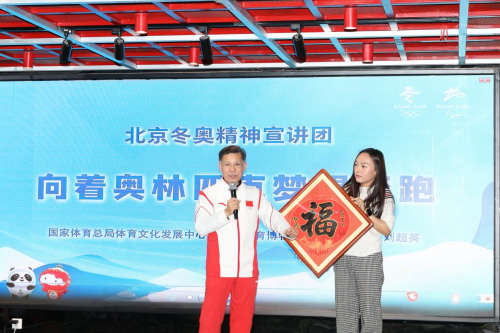 (照片:2008年北京奥运会火炬手、2022冬奥会宣讲员刘超英发言)