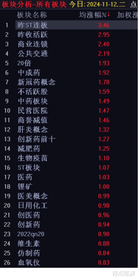 再去看了一下盘面,医药板块果然集体上涨,如下图:
