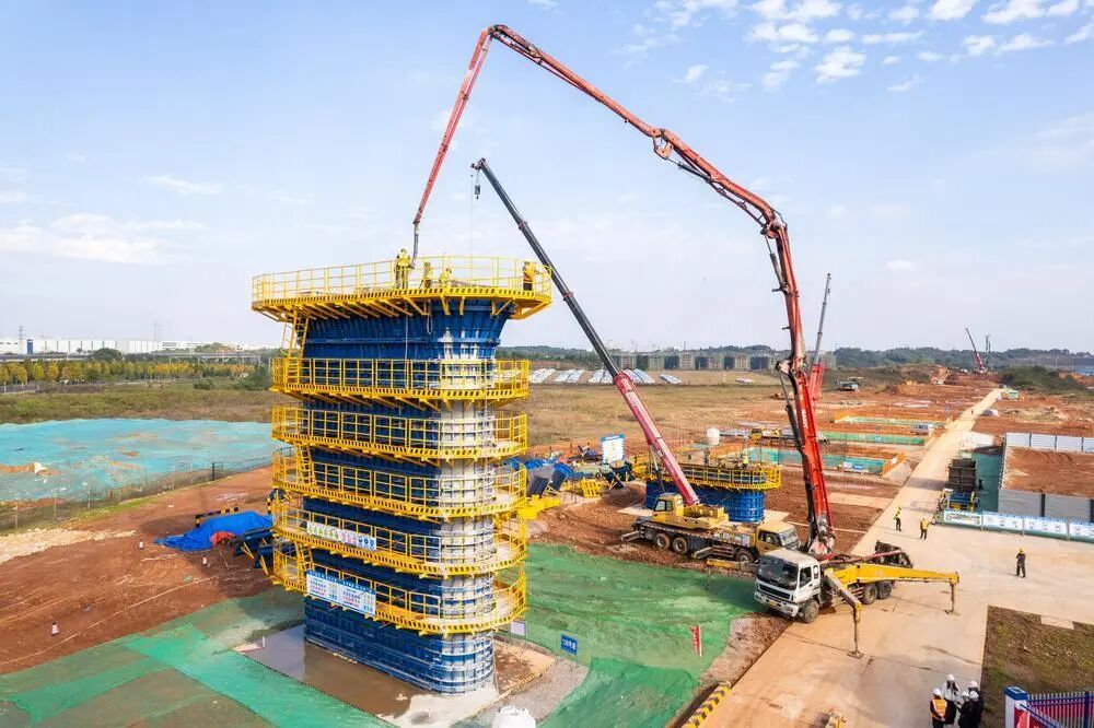 11月5日,机场高速特大桥130号墩完成混凝土浇筑,成为全线首座成型桥梁墩柱,标志着桥梁工程取得阶段性突破