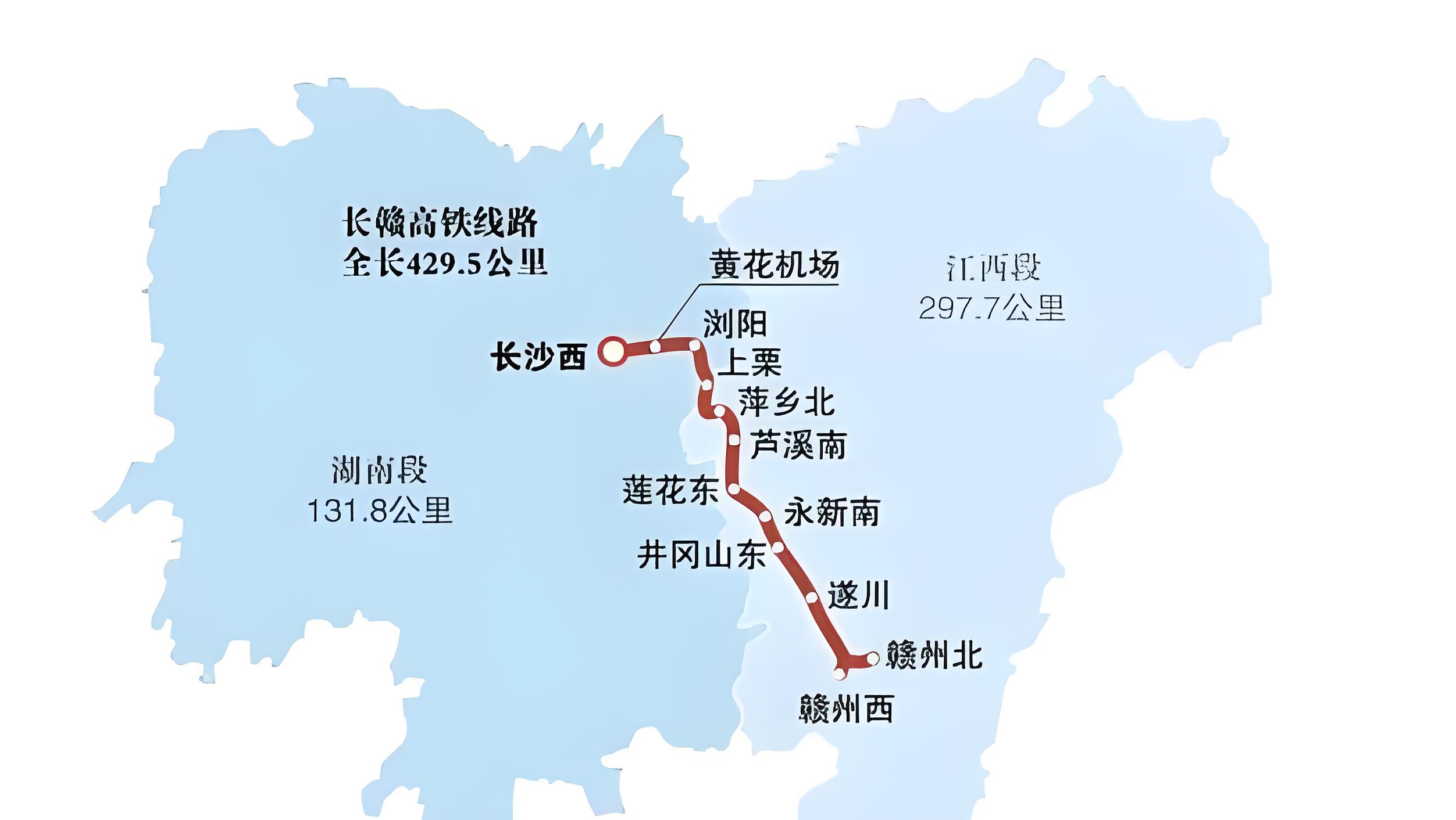 而长赣高铁(长沙西至赣州)是国家“八纵八横”渝厦通道的核心段,设计时速350公里,全长约429公里,预计2029年建成通车。其线路布局与联络线设置直接针对长沙当前的高铁痛点,有望成为解决问题的关键: