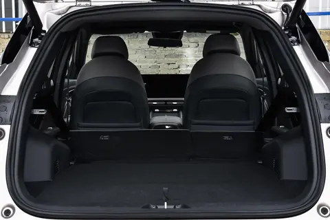 空间表现是家用 SUV 的重要考量,这款车的车身尺寸为 4550x1868x1675mm,轴距 2656mm,我们找了一位身高 178cm 的体验者来感受空间。坐进前排,调整好主驾座椅(主驾支持电动调节,前后、靠背、高低都能调),体验者的头部有一拳两指的余量,腿部空间也比较充裕,就算把座椅调至最后,膝盖也不会碰到中控台。保持前排座椅位置不变,体验者坐进后排,头部有一拳的余量,膝部则有两拳的空间,就算长时间乘坐,腿部也不会觉得局促,跷二郎腿也没问题。中间地台的凸起不算高,大概有半个拳头的高度,满载三人时,中间乘客的腿部也能有不错的放置空间,不会太难受。储物空间的设计也很贴心,全车有 23 处储物点,四门内门把手能轻松放下 iPhone 16 MAX 这样的大屏幕手机,不用特意找地方放;副驾的女王挂钩是隐藏式的,不用时可以收起来,不影响美观,用的时候能挂外卖盒、包包或阳伞,避免东西随意放置导致车内杂乱;前排门板内还有隐藏式的雨伞收纳空间,下雨天雨伞放进去不会弄湿车内,这个设计挺实用。中控台下方有镂空的储物空间,能放包或纸巾盒,一体式中控扶手台有两个杯托,能放保温杯或饮料瓶,扶手箱内部空间也不小,能装下不少小物件。后备箱常规容积为 475L,日常购物的物品或行李箱都能轻松装下,周末带家人短途出游时,把后排座椅放倒(支持 40:60 比例放倒),后备箱容积能扩展到 1415L,孩子的玩具、野餐垫、帐篷等装备都能装下,而且放倒后的座椅和后备箱地面齐平,放一些长条状的物品也很方便。电动感应后尾门用起来也方便,手里拎着东西时,感应到钥匙就能自动打开,还能根据停车环境调整开启高度,避免碰到低矮的车库顶或树枝。