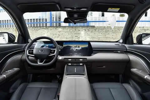 外观设计上,这款车融入了城市与水的元素,江韵叠浪无边界前脸格栅用黑色、车身色和电镀材质搭配,视觉上挺有辨识度,不会显得单调。碑影锋芒 LED 前大灯内部有 24 颗 LED 灯珠,融入了盾形元素,和格栅呼应形成稳固的六边形,夜间点亮后照明范围不错,远光可达 150 米,近光 55 米,日常夜间行车能提供清晰的视野,不用频繁切换远近光。桥影光链 LED 尾灯则有 118 颗 LED 灯珠,贯穿式的设计让车尾在夜间更醒目,灵感来自千厮门大桥的灯光形态,夜晚行驶时,尾灯的光影效果能和城市夜景呼应,挺有特色。车身颜色有 5 种金属漆可选,萤石灰、月光白这类时尚色系适合喜欢潮流的用户,星钻黑、炫影灰则更沉稳,适合职场人士。涂装工艺采用了 8 层涂层,从内到外依次为镀锌层、磷化层、电泳层、中涂层、两层色漆层和两层清漆层,其中清漆层厚度达 55-65 微米,不仅让车身看起来有镜面般的光泽,还能提升耐磨性和耐候性,就算用个几年,车漆也不容易失去光泽或出现小划痕。19 寸桥拱环影轮毂造型比较大气,轮毂中心向外辐射的辐条如同大桥的钢索,转动时的动态效果挺好看,轮胎规格为 225/55 R19,行驶时对路面噪音的控制也还算可以,不会有明显的胎噪传入车内。