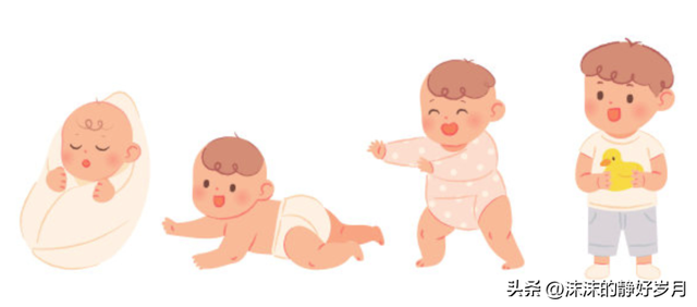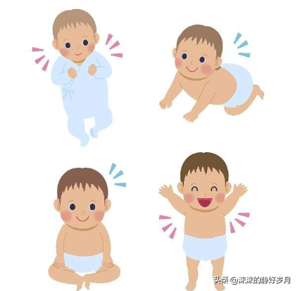 抬头(1月)→ 翻身(3月)→ 坐(6月)→ 爬(9月)→ 站(10-11月)→ 走(15月)→ 跳(2岁)