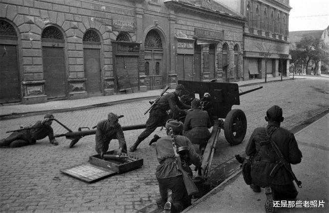 1945年,匈牙利首都布达佩斯,苏联红军正在用大炮轰击德军的目标。