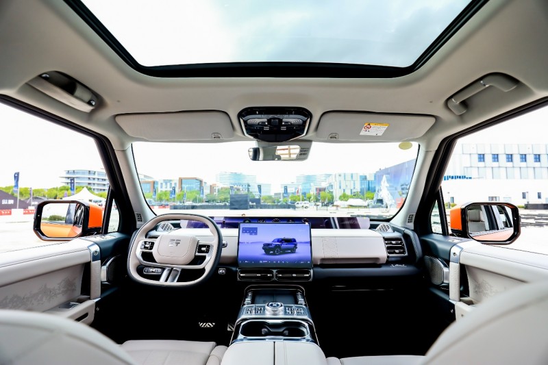 豪华越野的座舱绝不该是“灰头土脸、硬邦邦”的粗糙模样,也不应只停留在“能坐”的基础层面,而是要让用户“坐得香、坐得爽”。捷途纵横G700以“纵横美学”为设计灵感,构建出远超百万级豪车的座舱奢享体验。