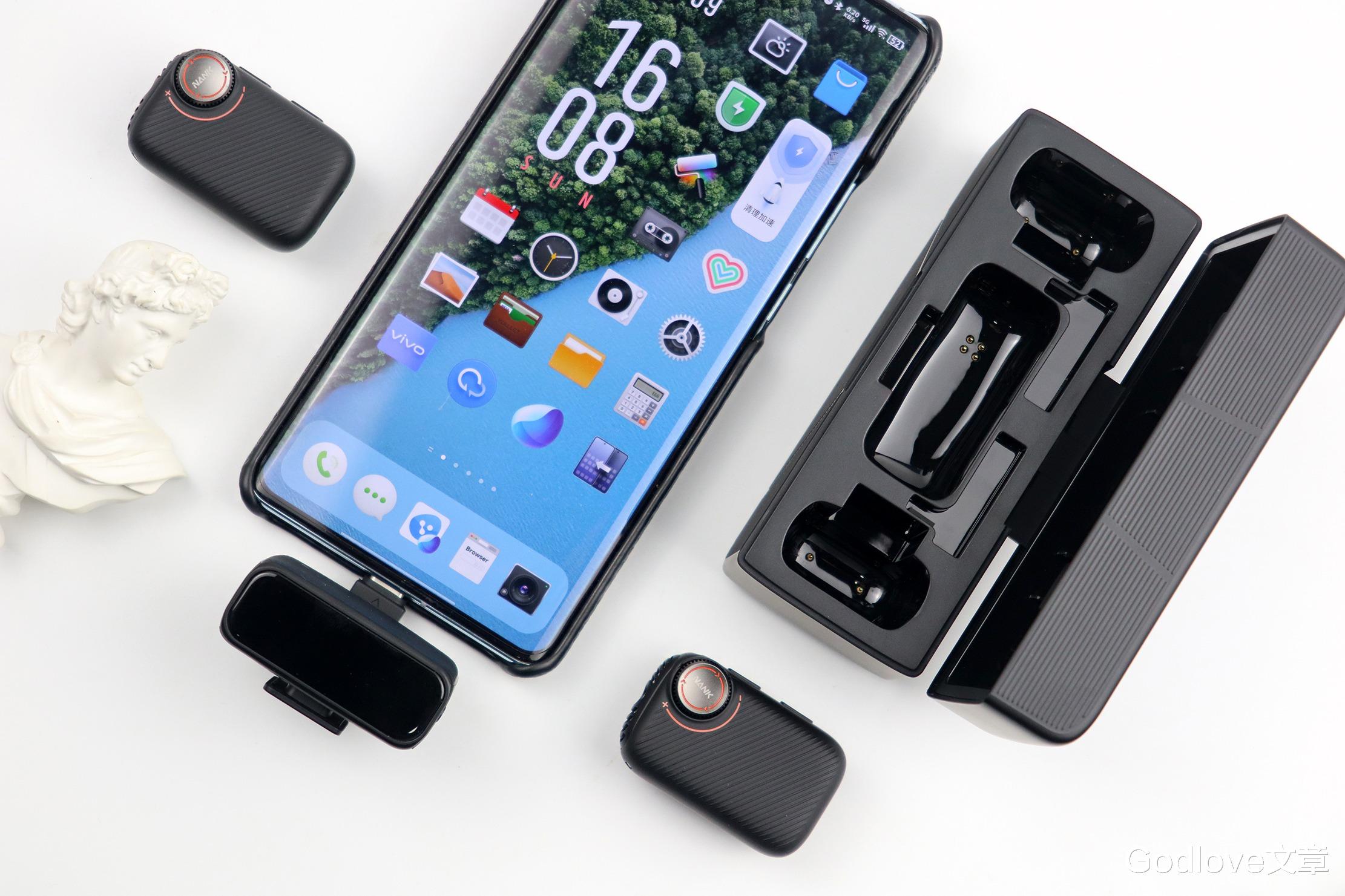 充电仓是包装设计也是产品的核心之一。它不仅能为麦克风和接收器充电,更是一个一站式的收纳仓。所有核心部件和转接头都有专属位置,完美解决了小配件容易散落丢失的烦恼。