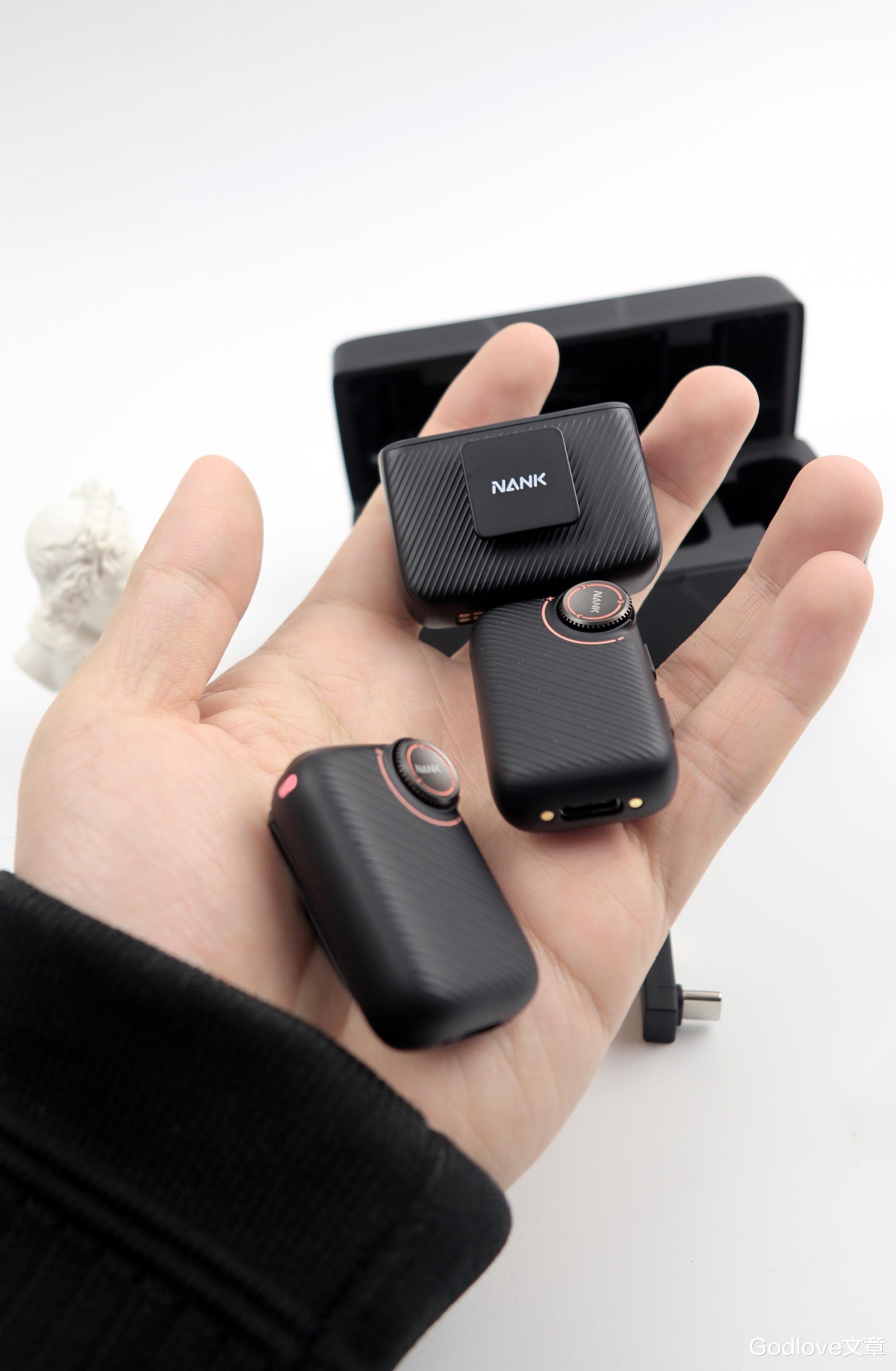 充电仓整体个头设计得非常小巧、便携,非常适合外出拍摄、视频博主、经常需要移动办公开会的人群,可以随时随地为麦克风补充电量,完全没有携带负担。