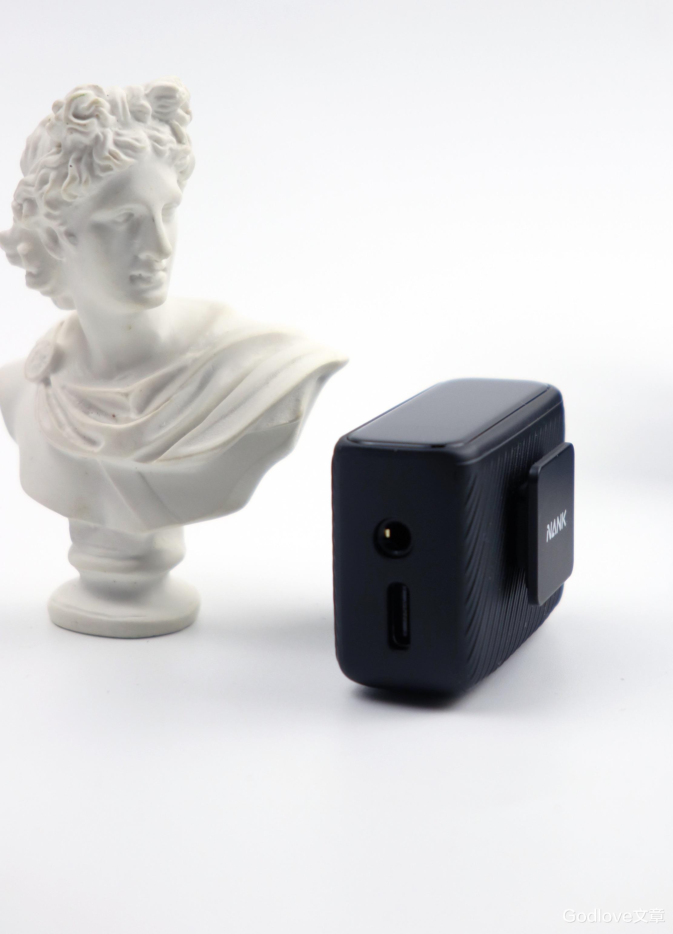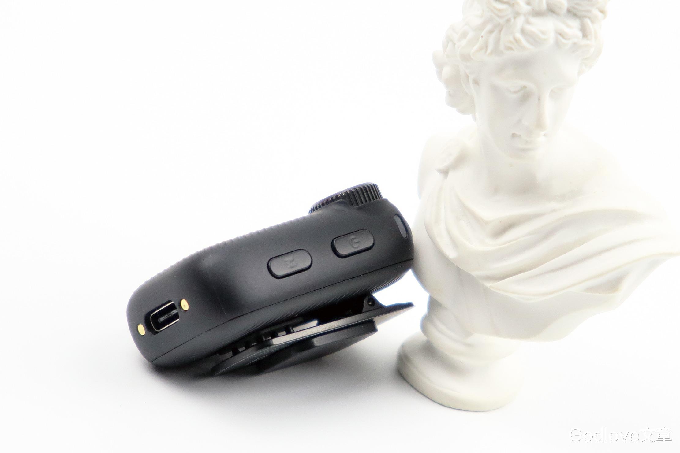 USB-C 充电/数据接口位于发射器的底部,能够提供充电和连接设备的作用。侧面还有一个电源按键和功能按键。