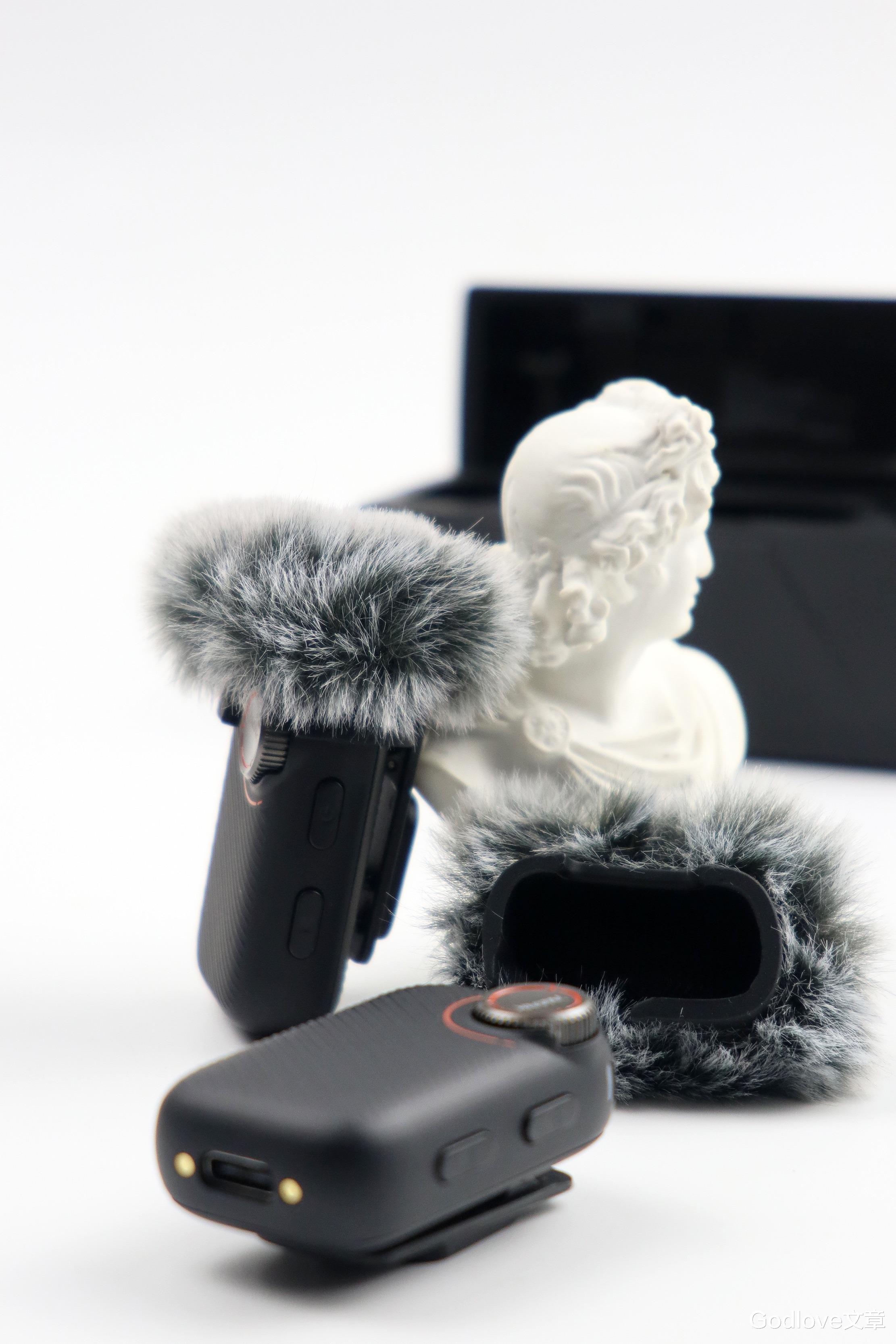 附赠的防风毛套装到发射器上端的话适合有效减少风噪和环境噪音,提升人声清晰度。适合户外直播、街访、运动记录。