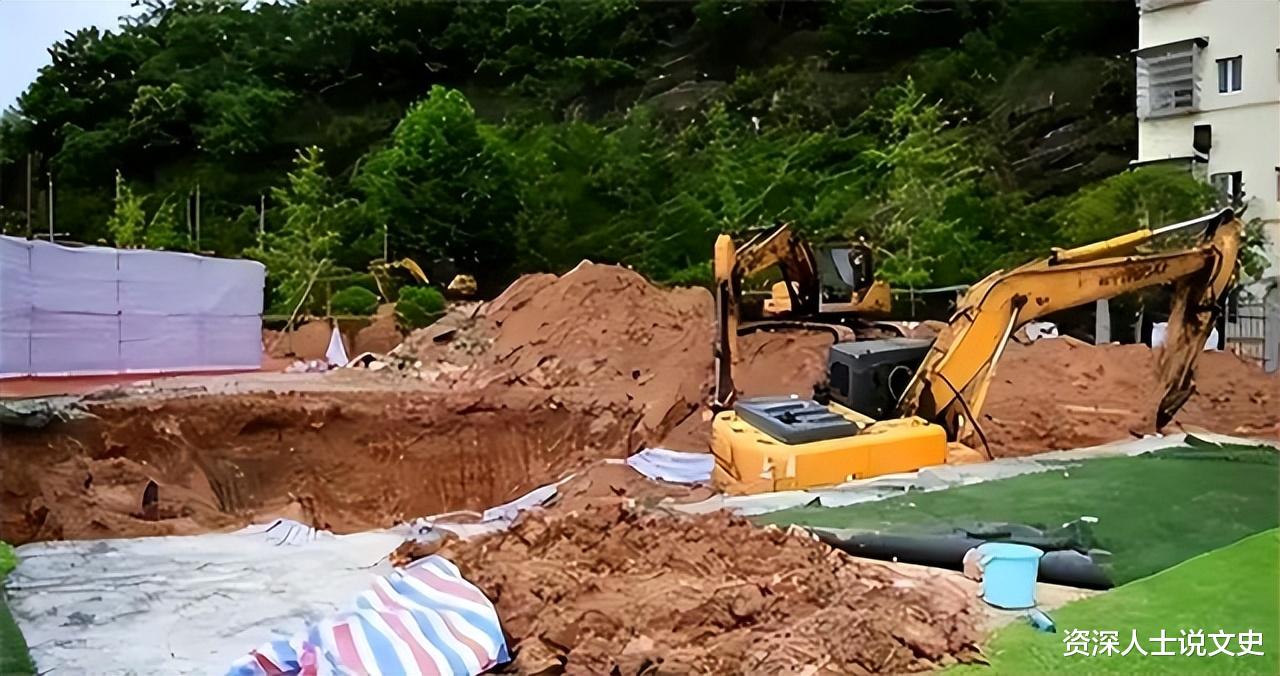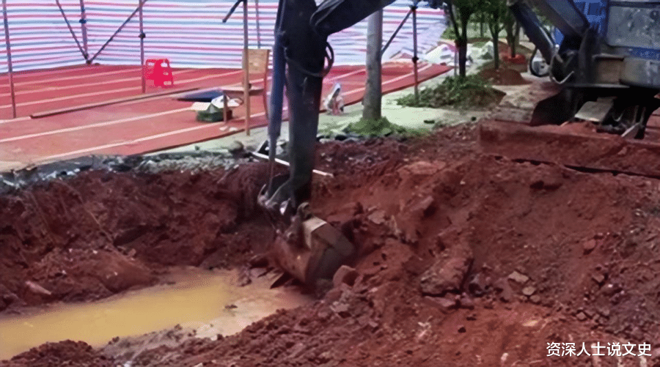 2019年6月18日,雨天,湖南省新晃中学的操场上,几台挖掘机不停地工作,原本平整的操场地面被挖开,他们似乎在寻找着什么重要的东西。没过一会儿施工队传来了呼喊声,“挖到骨头了!”