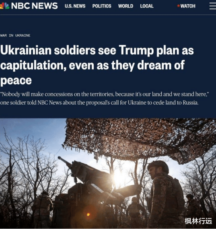 “NBC新闻”记者在顿涅茨克前线采访了许多一线士兵,士兵们认为川普的“和平计划”本质上就是投降,他们对乌克兰可能要割让领土感到极其愤怒——
