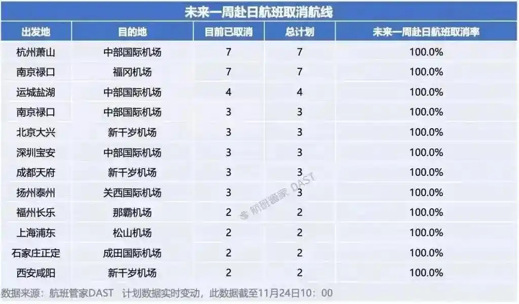 中日航线正经历“急刹车”:截至11月24日,12条航线全线停飞,天津-关西、南京-关西等航线取消率超60%。未来一周计划航班取消率预计达21.6%,创月度新高。运力锐减导致供需失衡:剩余航班经济舱爆满,东京至福州航班客座率达100%,大阪至上海航班甚至超售12张。机票价格同步飞涨,平日2000元的经济舱飙至万元,中转票价格翻倍仍一票难求。部分旅客因抢购“第三方特价票”遭遇“幽灵机票”(无法值机),或中转延误滞留机场,陷入“人在囧途”困境。