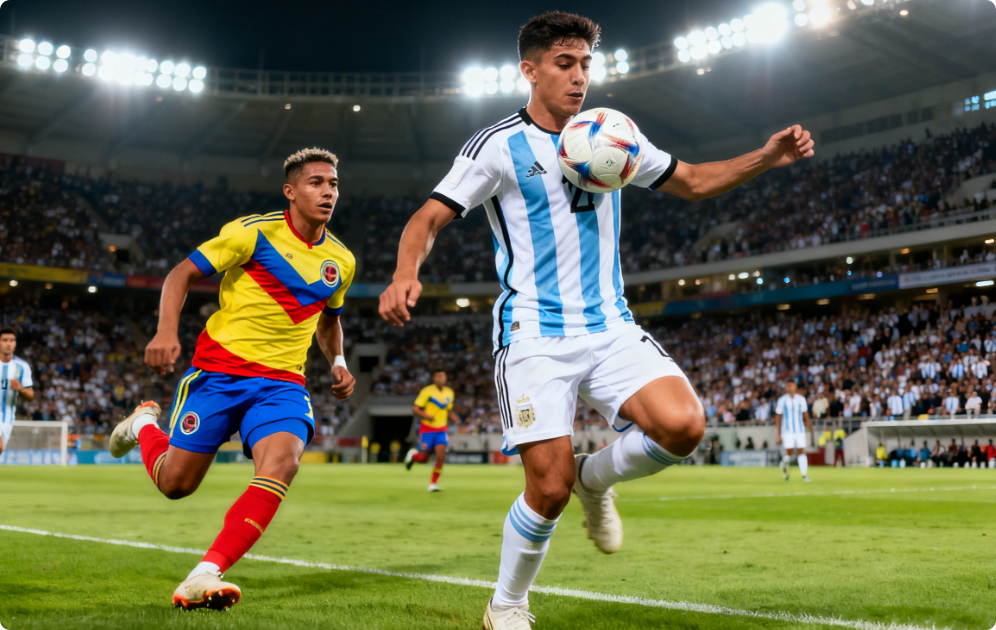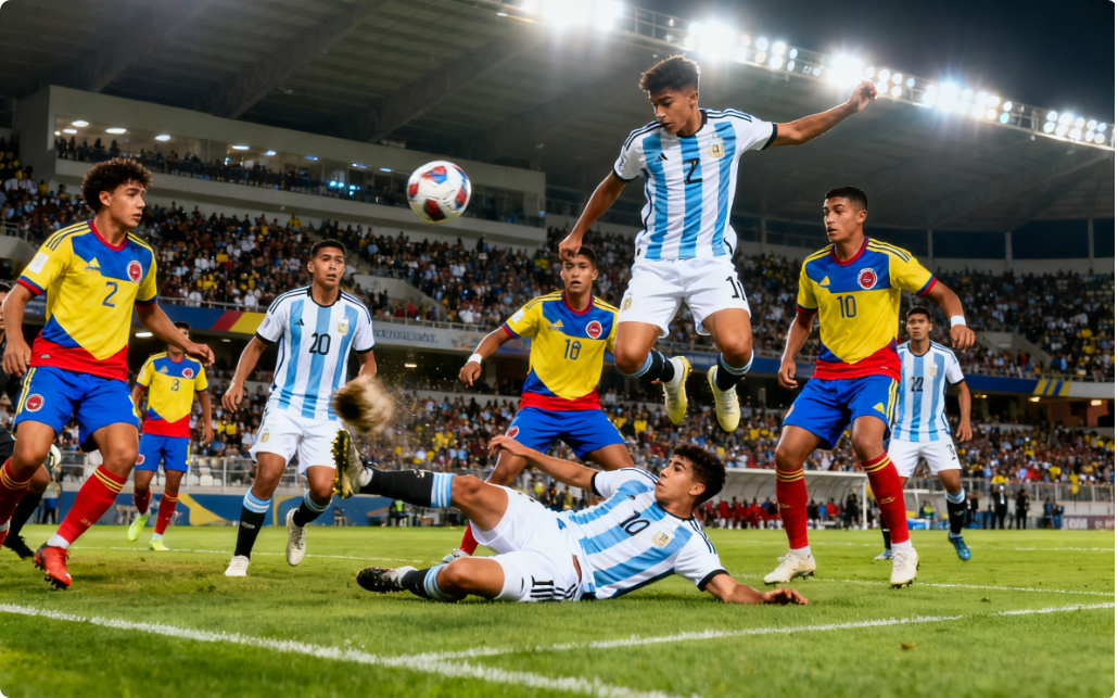 北京时间2025年10月15日凌晨,南美青年足球锦标赛迎来焦点战——阿根廷U20与哥伦比亚U20的强强对决。这场被球迷称为"新星德比"的较量,不仅关乎小组出线形势,更是未来南美足坛格局的预演。两支球队均以技术流著称,比赛过程跌宕起伏,最终阿根廷青年军凭借队长瓦伦蒂尼的绝杀进球,以3-2险胜对手,延续了他们在该项赛事中对哥伦比亚的五连胜纪录。