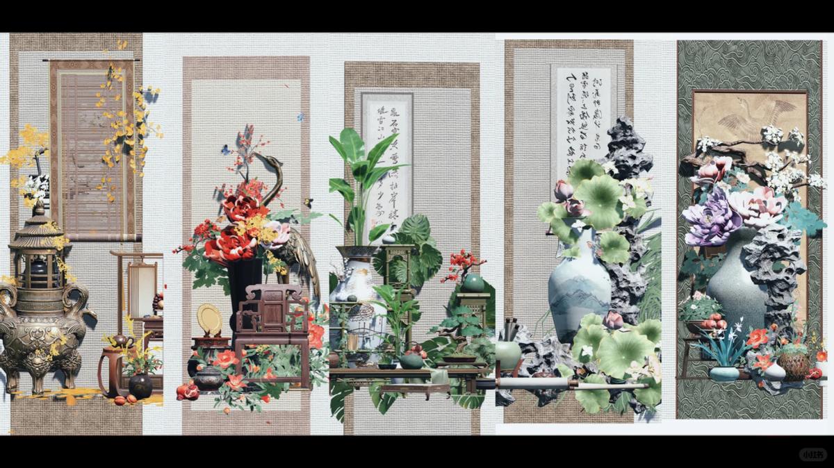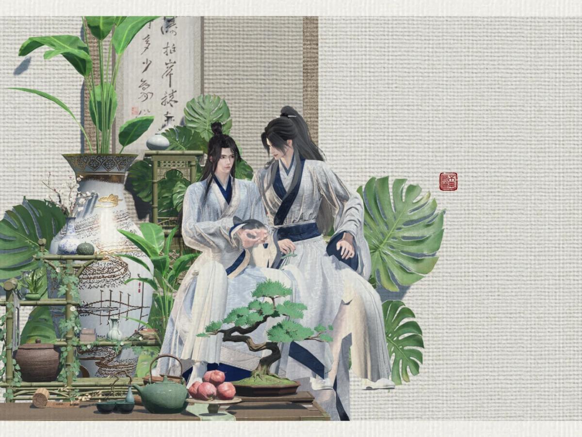 在这样的环境里,玩家们的二创情绪也是水涨船高,用《逆水寒》手游素材创作出了自己眼中的国风。博主@希望人没事在创作工坊中设计了古风小景“设色”,植物、家具高低错落,用书画作背景,东方韵味十足,受到了众多玩家的喜爱。
