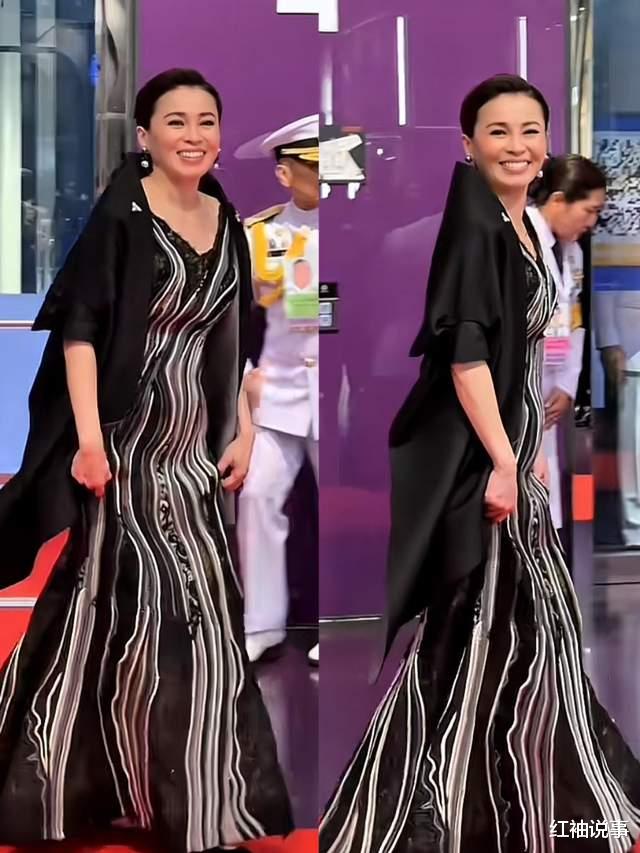 苏提达王后这次亮相的造型简直绝了,又仙又美,活脱脱就是一只高贵优雅的黑天鹅。虽说她都已经47岁,按年纪能算阿姨辈了,可那身材保持得超棒,紧致又匀称,没有一丝多余的赘肉。