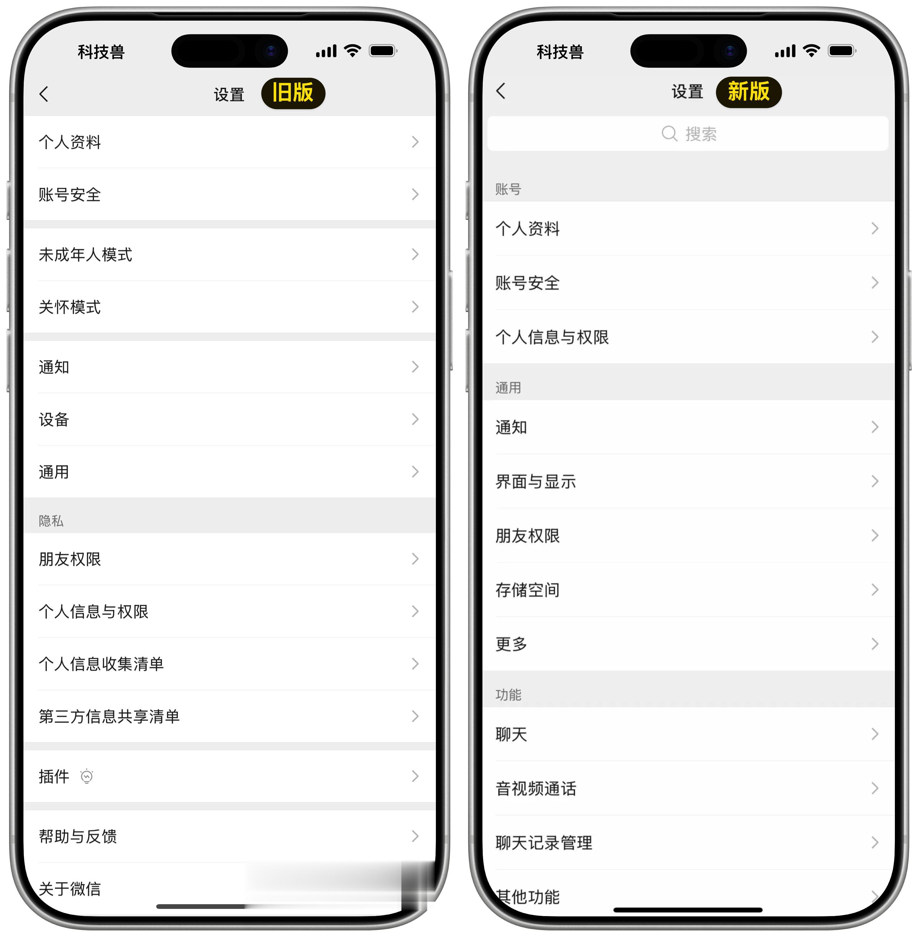 设置页面重新整理,查找更省时间另一个正在灰度测试的变化,是 iOS 微信设置页面的改版。