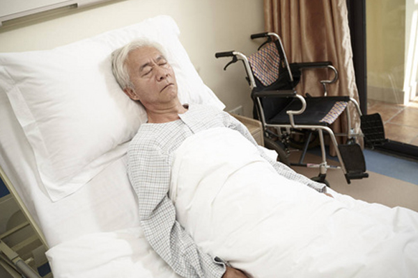 他从病床上探出半个身子,对着地上的垃圾桶狂咳不止。
