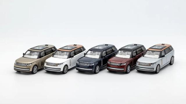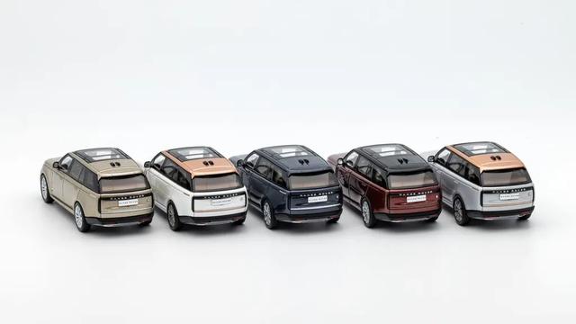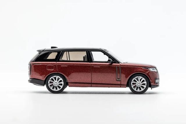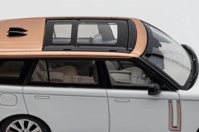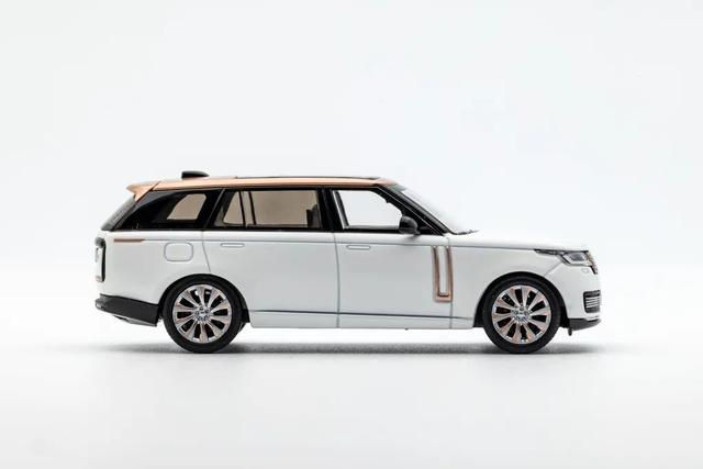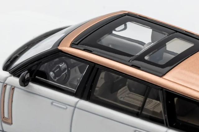 众所周知,LCD开模做一款模型都会按照1/18进行数据采样以及设计,而先推出市场的1/64的产品在形准方面完全是没有问题的,而模型的原型是加长版,后车门比较长,试玩的这几款新揽胜,漆面质感还是很不错的,毕竟LCD是合金大厂,特别是白色和银色两个版本,双色的漆面很惊艳;模型的门把手和前门上的装饰块都是用刻线来刻画的,而模型的刻线也够深够均匀;后车窗有隐私玻璃设计。