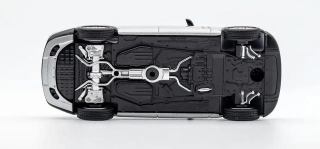 模型的底盘细节都是浮雕刻画,排气系统和悬挂系统有银色分色。