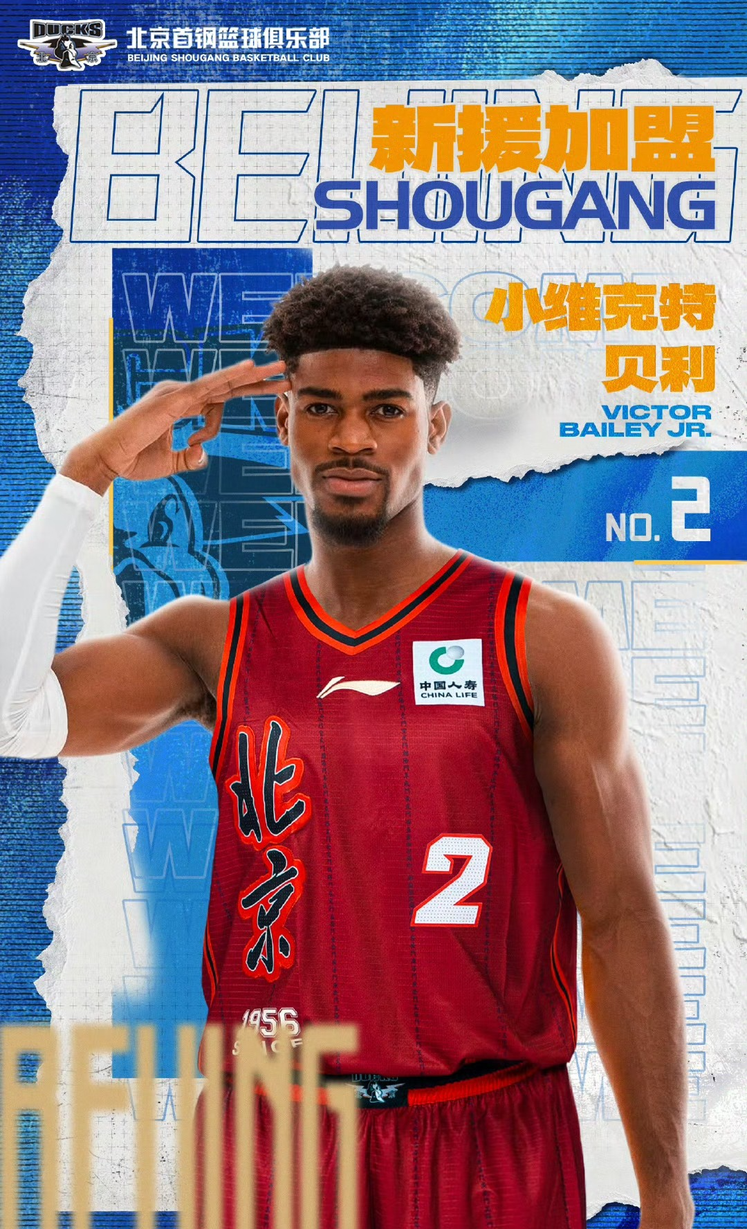 9日上午北京首钢男篮官媒发布公告,“俱乐部与美国籍球员小维克特·贝利,就签约事宜达成一致。注册后,小维克特·贝利将正式身披北京北汽2号战袍,代表俱乐部征战后续CBA联赛及相关赛事。”