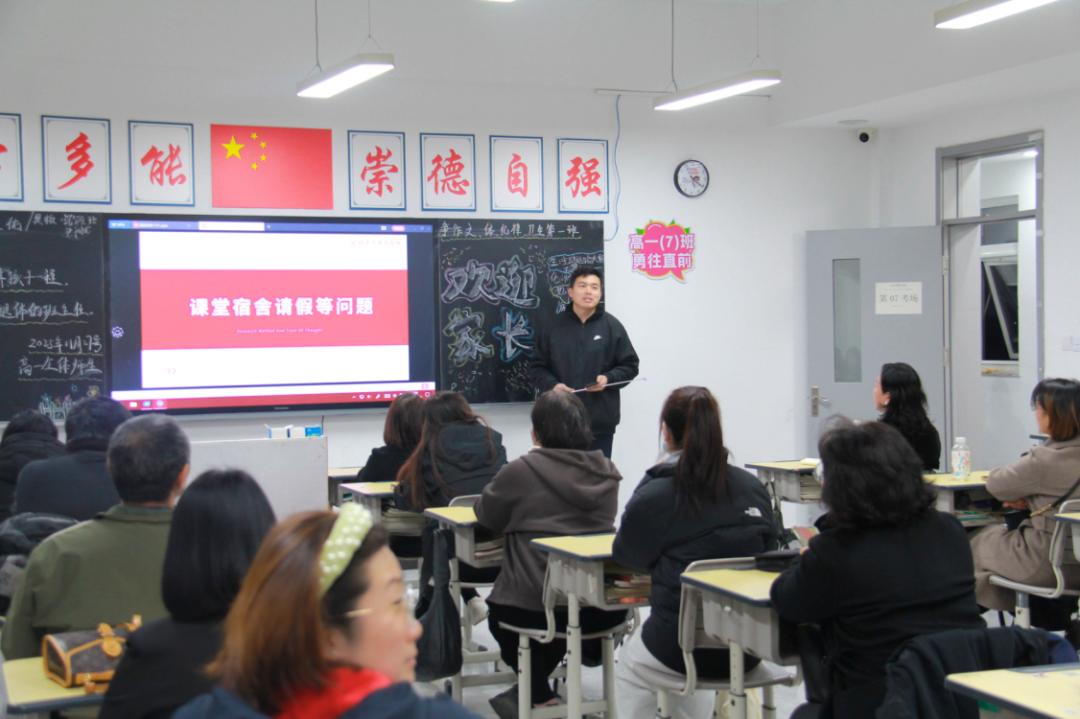 高一年级集中讲话结束后,家长们返回各自班级,正式进入班级家长会环节,与班主任及任课教师面对面深入沟通,聚焦学生课堂表现、学业适配情况、个性发展需求等细节,共同探讨个性化培养方案。