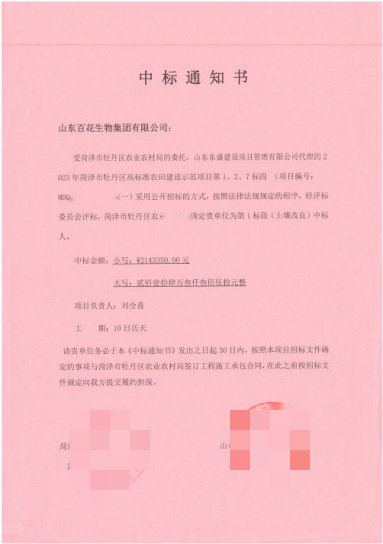 近日,山东百花生物集团有限公司(以下简称“山东百花”)向媒体紧急反映,其承接的2023年菏泽市牡丹区高标准农田建设示范项目第1标段(土壤改良)已竣工超2年,214万余元合同款项却被发包人菏泽市牡丹区农业农村局长期拖欠。企业历经十余次催款仍分文未得,资金周转陷入困境,职工权益保障面临严峻挑战。媒体通过核查完整合同文件、梳理详细沟通记录,全面还原了这起涉及高标准农田建设项目的款项拖欠事件全貌。