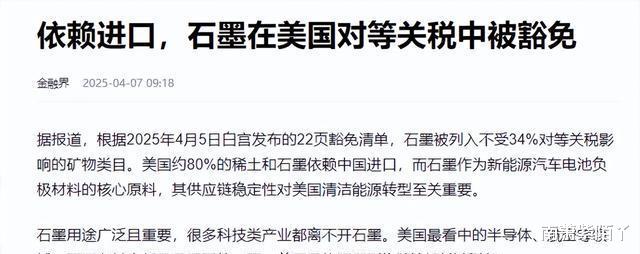 可能很多人都没注意到,白宫这次放出的那份豁免名单里,竟然还包括了咱们中国的石墨和稀土呢。