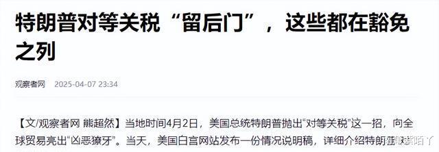 好了,咱们聊聊美国突然决定不收税的那两样出口货是啥吧?还有,特朗普这次是不是又在故弄玄虚呢?
