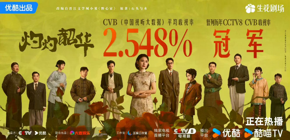 11月4日,由中国电视艺术委员会、四川省广播电视局主办的电视剧《灼灼韶华》研讨会在京举行。女性年代传奇剧《灼灼韶华》于9月11日在优酷和CCTV-8黄金档同步播出,据“中国视听大数据”(CVB)统计,该剧集均收视率达到2.61%,创下CVB自2019年发布数据以来CCTV-8历史最高收视纪录。