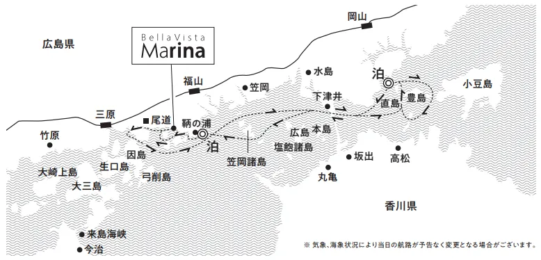 我们熟知的直岛、丰岛、小豆岛都在航线之中,而濑户内海更多的岛屿和秘境则在Guntu的路线中。
