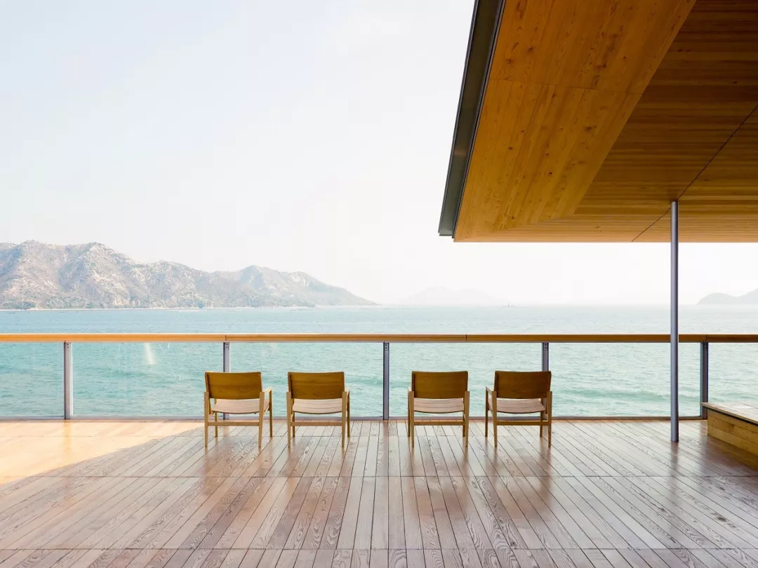 Guntu房间里面的露天露台,设计上这里比甲板特意抬高起一层,这样能让游客即使是坐在露台上,也能轻而易举地看到海面。散落在濑户内海中的岛屿在天幕与海景的绝色中重叠在一起,如海外仙岛般美丽。与其说是欣赏濑户内海,不如说是置身于濑户内海之中,成为天地绝景中的一部分。