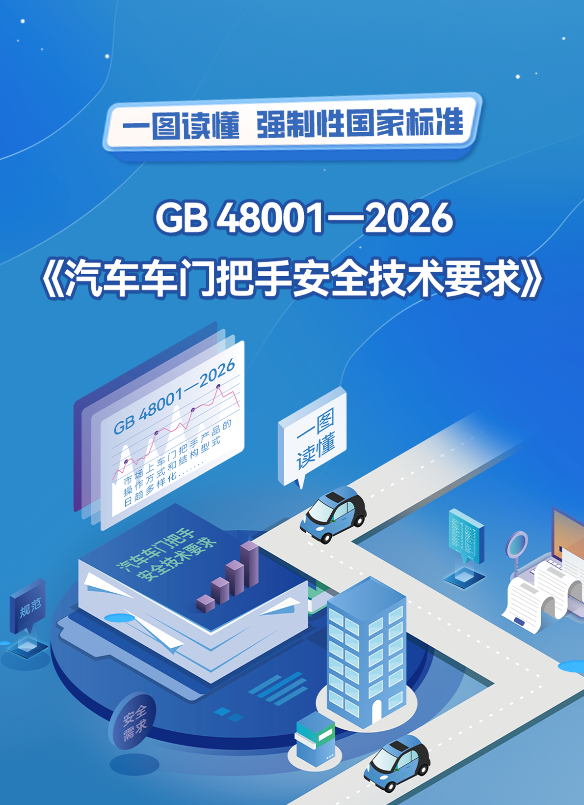 2026年2月2日,工信微报发文称,编号为GB 48001-2026的《汽车车门把手安全技术要求》于2026年1月28日由国家市场监督管理总局、国家标准化管理委员会批准发布,将于2027年1月1日起开始实施。