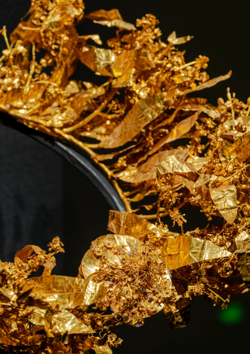其中不乏令人眼前一亮的展品,比如桃金娘形花冠,实在是太过精美,感觉呼一口气都能让金叶子颤动!