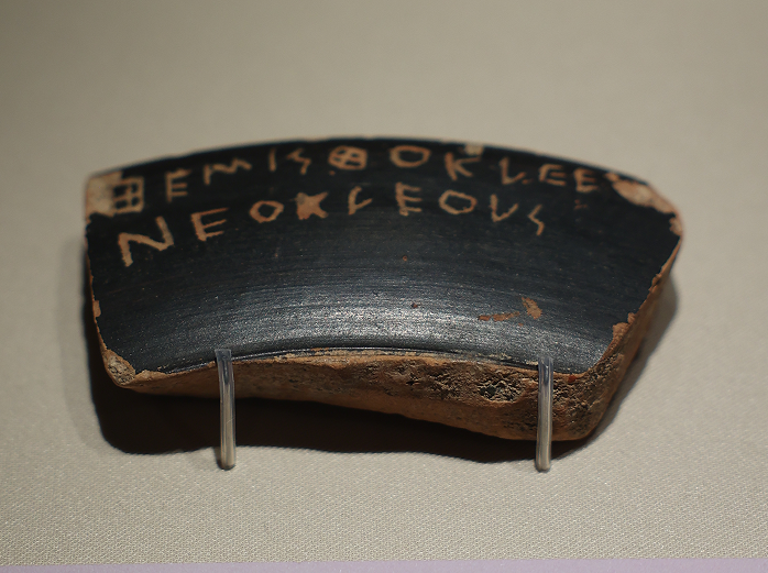 放逐地米斯托克利的陶片 放逐于公元前472年 陶