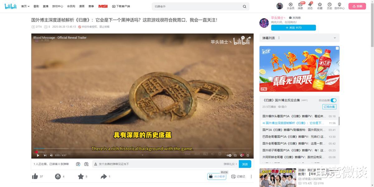 《归唐》自预告PV首曝之后就引得无数玩家的热议,不仅故事题材新颖,向全世界传播中国的历史,与甘肃文旅达成深度合作,更是助推了这一波文化的输出。至今为止,《归唐》在油管的视频播放量已经突破500万,值得肯定的是,《归唐》确实让更多外国玩家注意并了解到中国的文化,这是一次很好的文化传播。