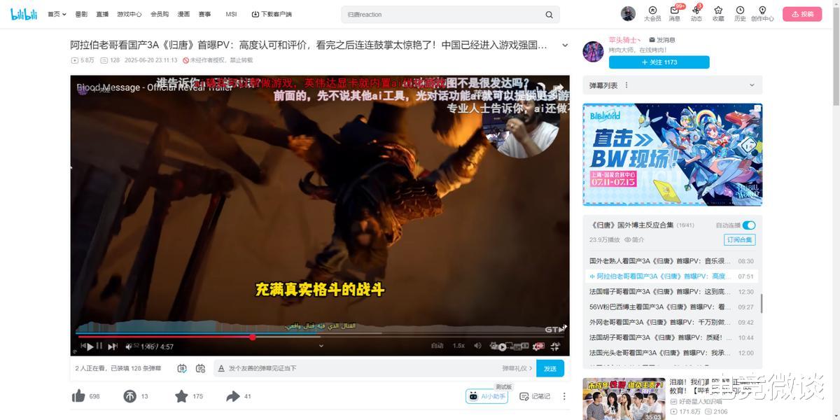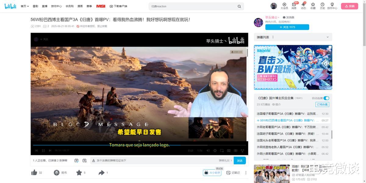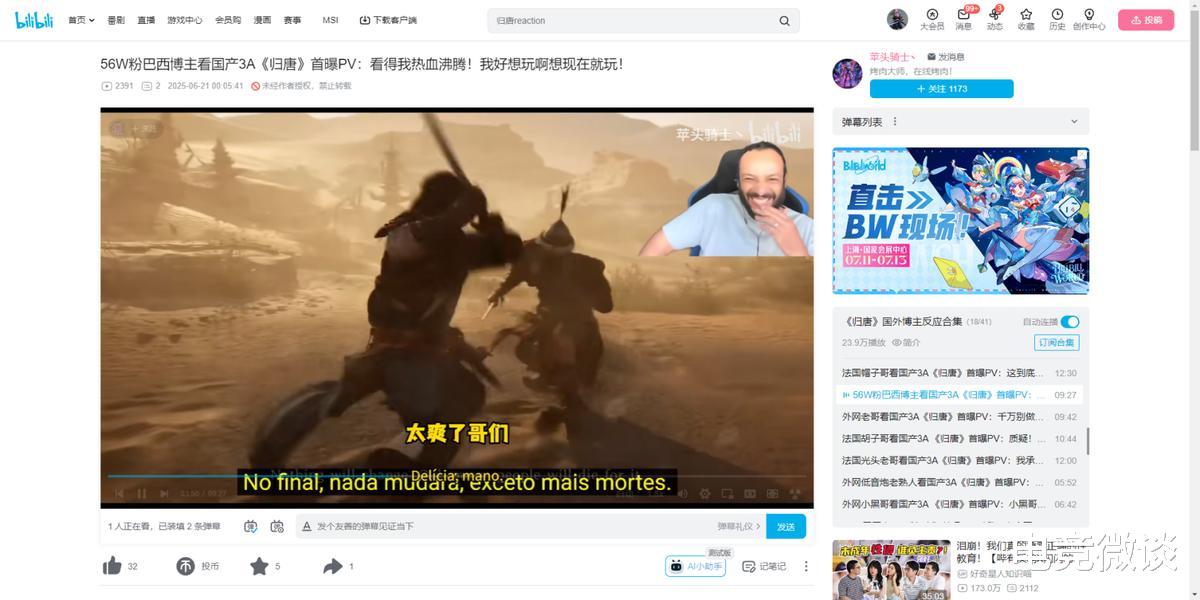 拥有56万粉丝的巴西网红博主看完PV后也有相同的看法,游戏内这种冷兵器的近身格斗方式内让玩家更深入体验到战斗搏杀的魅力,在与敌人的交锋之间,凭借力量与技巧,刀剑飞光掠影一般快速命中敌人,让博主直呼“太爽了”!