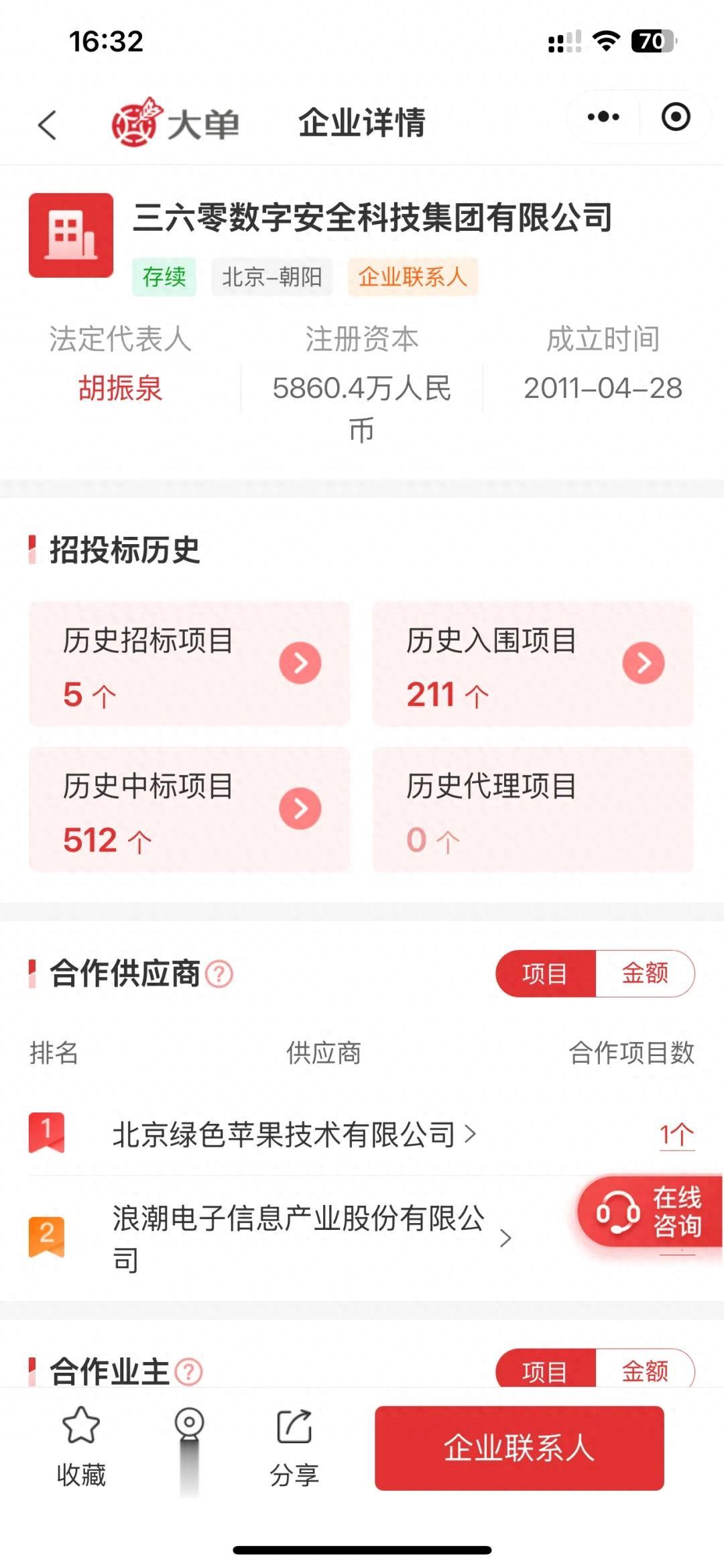 第一:三六零数字安全科技集团有限公司