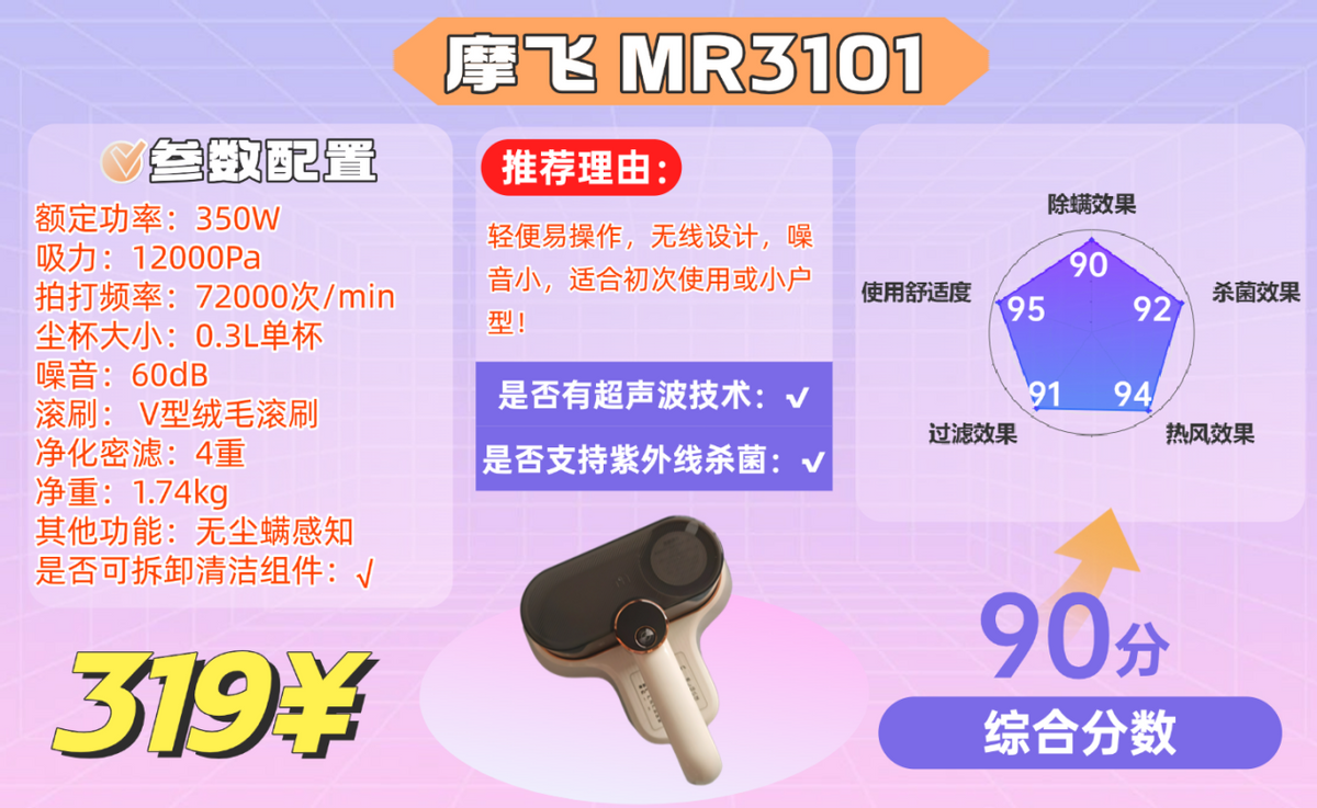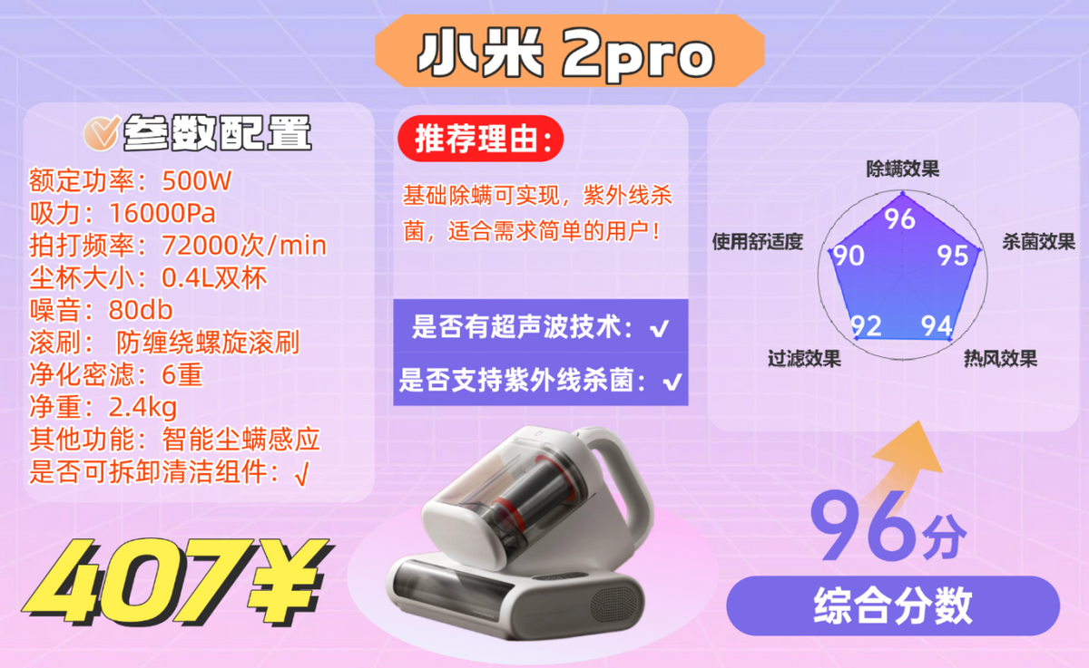 一句话锐评:预算有限入门款,基础除螨够用,深度清洁和噪音控制欠佳~